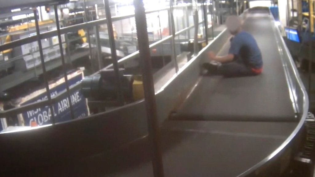 Videolla näkyy, kuinka liukuhihna kuljetti poikaa pitkin sokkeloista lajitteluhuonetta. Työntekijät yrittivät saada lapsen kiinni, mutta hihna liikkui liian nopeasti.