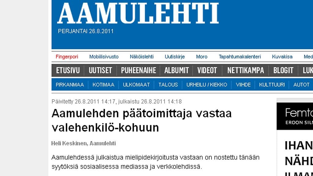 –Meille tulee 5 000 mielipidekirjoitusta ja jokaisen henkilöllisyyden tarkistamiseen ei tietenkään ole aikaa. Meillä jokainen mielipidesivun kirjoitus pitää allekirjoittaa omalla nimellään, nimimerkillä sitä ei pysty tekemään. Me teemme tarkistuksia vain silloin, kun on jotain erityistä, jotain poikkeavaa tai silloin kun se on jokin erityisen rankka syytös jotain henkilöä kohtaan. Silloin olemme yhteydessä tähän kirjoittajaan uudemman kerran.