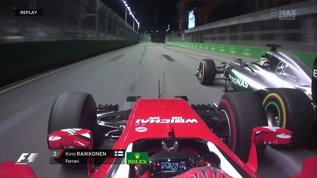 Kimi Räikkönen ohitti Lewis Hamiltonin upeasti Singaporen GP:ssä sunnuntaina.