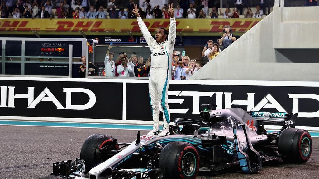 Hamilton vei mestaruuden ennen toiseksi sijoittunutta Ferrarin Sebastian Vetteliä peräti 88 pisteen erolla. Räikkönen keskeytti Abu Dhabin GP:n alkukierroksilla, mutta oli silti MM-sarjan kolmas.