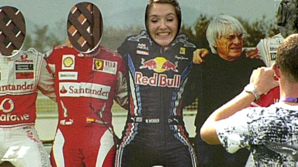 Kuvaan on päässyt mukaan myös F1-pomo Bernie Ecclestone, mutta ikävä kyllä hänen paikallaan ei ole mahdollisuutta poseerata.