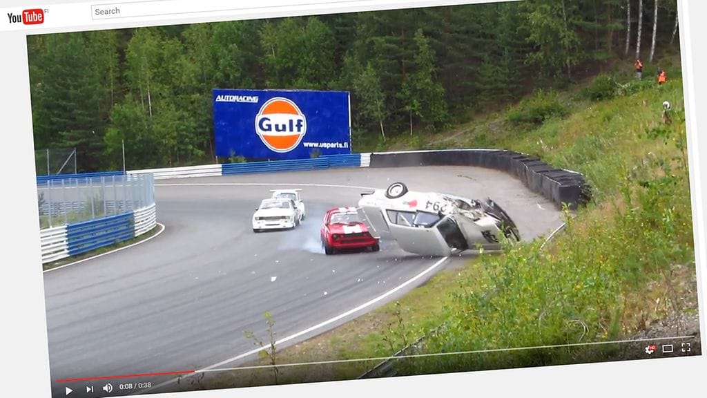 Viikonlopun kilpailussa nähtiin hurja tilanne, kun Volvo 244:ää ohjastanut Kari Kukkola törmäsi radalle jääneen Juhapekka Hietasen Escortiin.