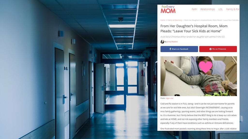 Äiti Laura Correada-Silva jakoi kuvan sairaasta lapsestaan Imgur-kuvapalvelussa muistuttaakseen flunssan vaaroista. Correada-Silvan lapsi Chloe sairastui vakavasti ja joutui viettämään aikaa teho-osastolla; hän sai tartunnan serkultaan, jonka vanhemmat väittivät, ettei tauti ole tarttuvaa sorttia.
