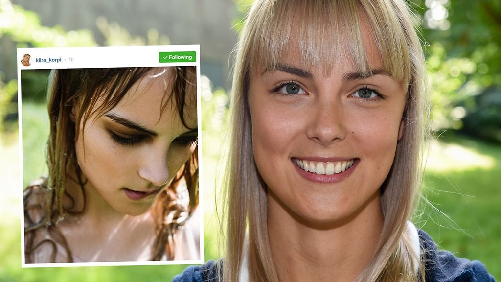 Korpi julkaisi Instagramissa kuvan, jossa hän esittelee poseeraustaitojaan. Kuvassa kaunottaren vaalea kuontalo on kauttaaltaan märkä ja hänellä on tummanpuhuva meikki.