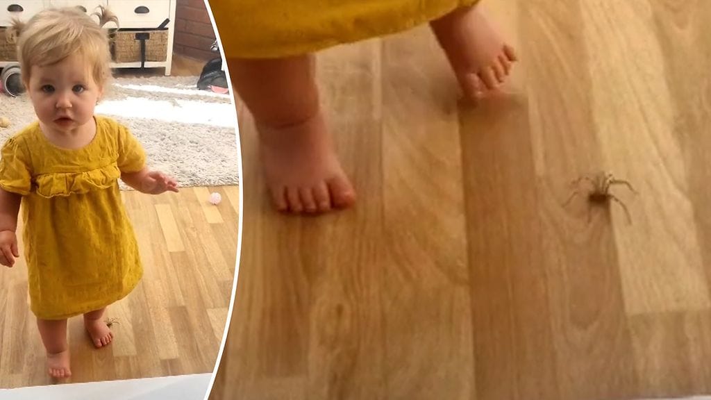 Äitinsä hädästä selvästi hämmentynyt taapero yrittää taapertaa äitinsä luokse sen sijaan, että olisi välittänyt lattialla lepäävästä hämähäkistä. Samalla taapero onnistuu vahingossa astumaan hämähäkin päälle. Voit katsoa tilanteen yllä olevalta videolta!