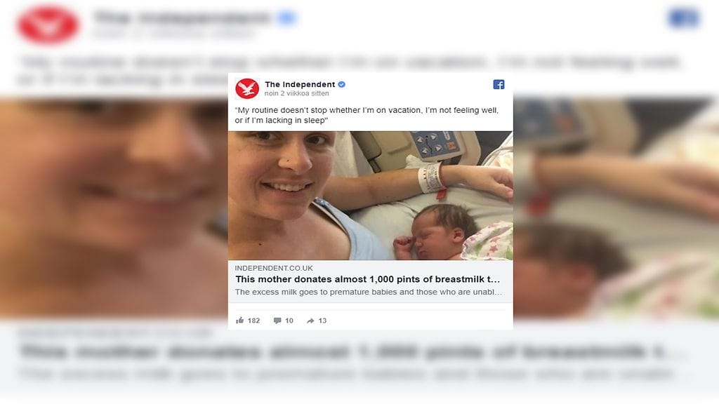 Kolmen lapsen äiti kärsii runsaasta maidonerityksestä, ja selvitäkseen vaivan kanssa hän ryhtyi äidinmaidon lahjoittajaksi. Tabitha joutuu pumppaamaan maitoa kolmen tunnin välein, ja hän on lahjoittanut eteenpäin yli 400 litraa rintamaitoa.