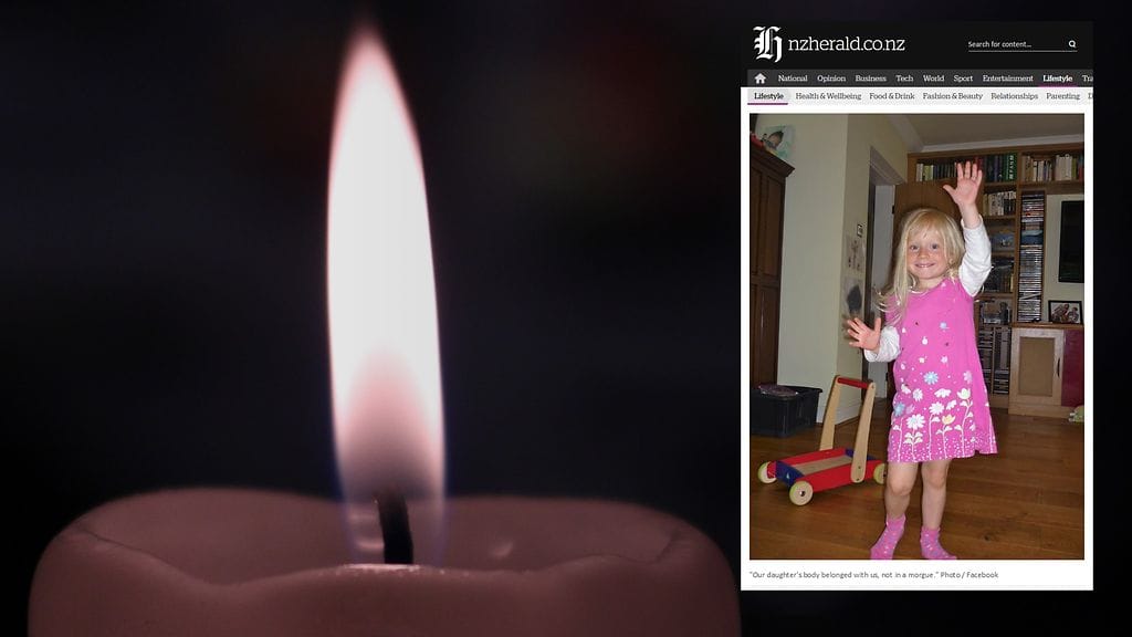 Tytär menehtyi äitinsä viereen, mutta kuolemansa jälkeen hänet siirrettiin äidin ja James-isän toiveesta omaan huoneeseensa odottamaan hautajaisia. Tyttö oli kotona 11 päivää, kertoo New Zealand Herald -lehti.