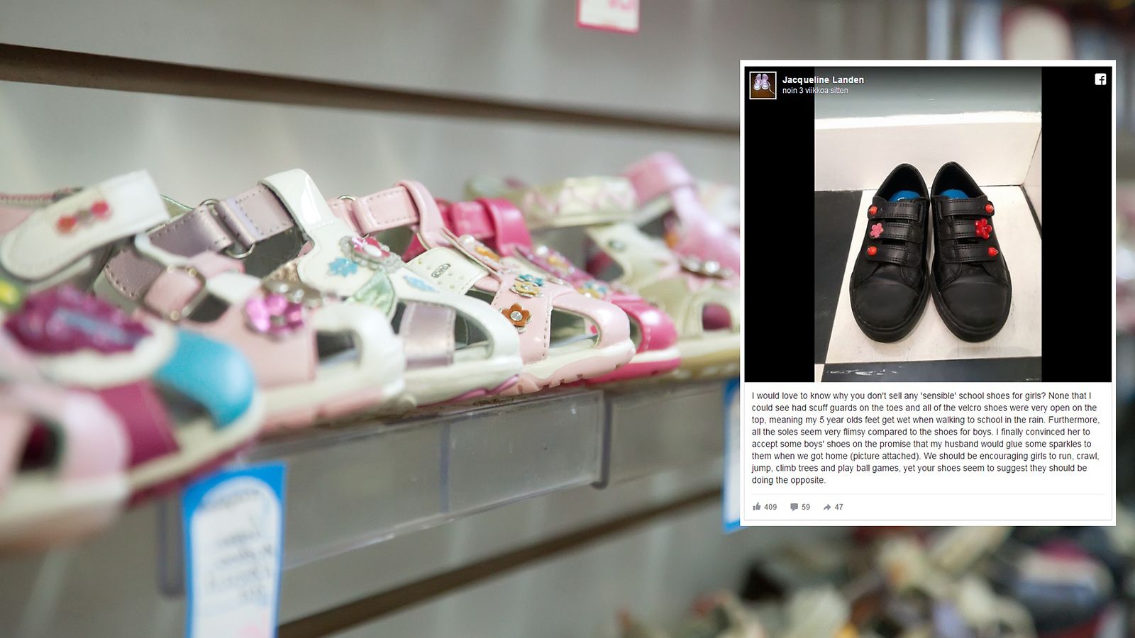 Äiti Jacqueline Landen julkaisi Facebookissa arvostelevan tekstin, jossa hän kritisoi kenkäkauppa Clarksin valikoimaa. Tekstissään äiti ihmettelee, miksi liike ei myy tytöille käytännöllisiä kenkiä, joita he voisivat käyttää koulussa. Tarjonnassa ulkonäkö menee kestävyyden edelle.