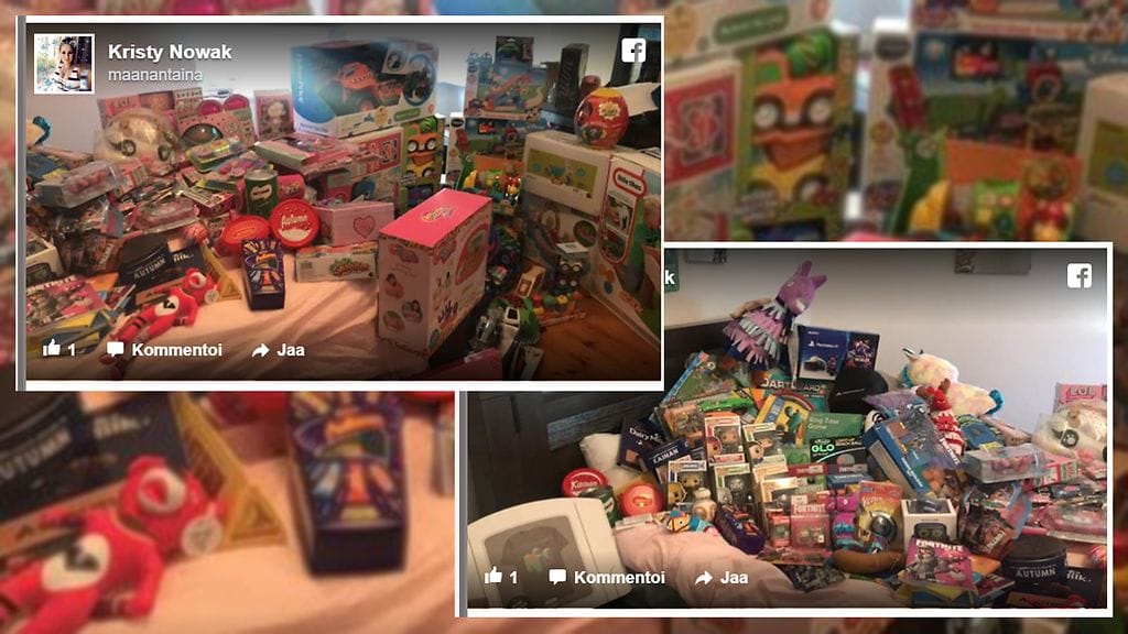 Kolmen lapsen äiti Kristy Nowak jakoi australialaisten äitien Facebook-ryhmään kuvat kolmelle lapselle ostamistaan lahjavuorista. Vuoriksi niitä voikin lähes kutsua, sillä yhteen kasatut lahjat täyttivät melkein koko huoneen.