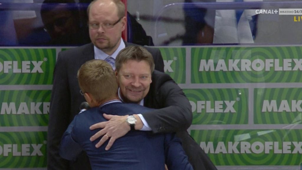 Eurooppa- ja ulkomaankauppaministeri Alexander Stubb kiirehti onnittelemaan päävalmentaja Jalosta.