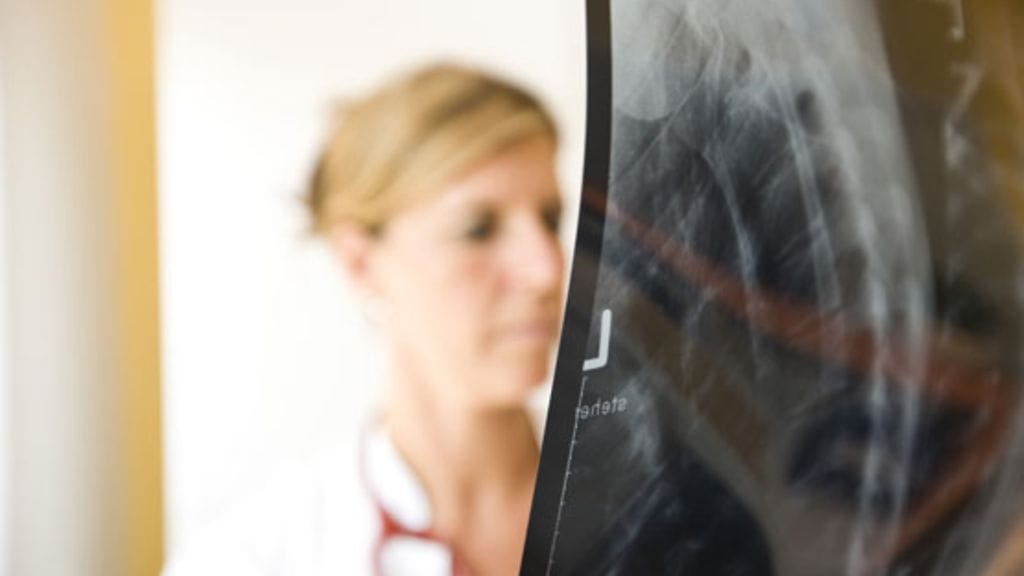 Toinen puoli rinnasta alkoi turtua ja vasemmasta kädestä hävisi puristusvoima. Fysioterapeutti epäili peukalojänteen rasitusvammaa.