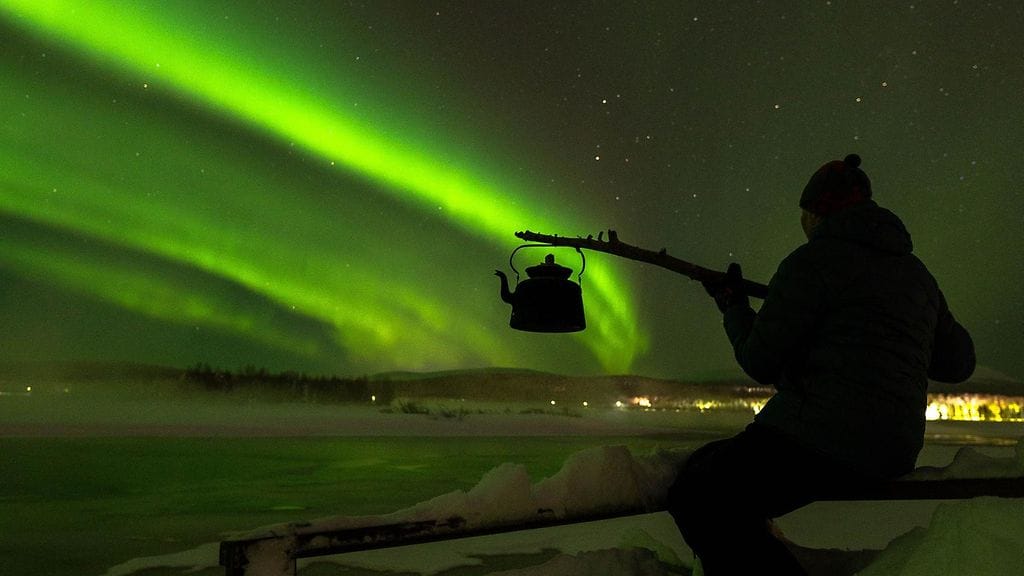 – Lehtijuttua lukiessa serkkupoika kehui, että Lapissa keitetään kahvikin revontulilla. Silloin tuli mieleen, että miksei kukaan ole tuollaista kuvaa ottanut, Kaulanen kertoo.