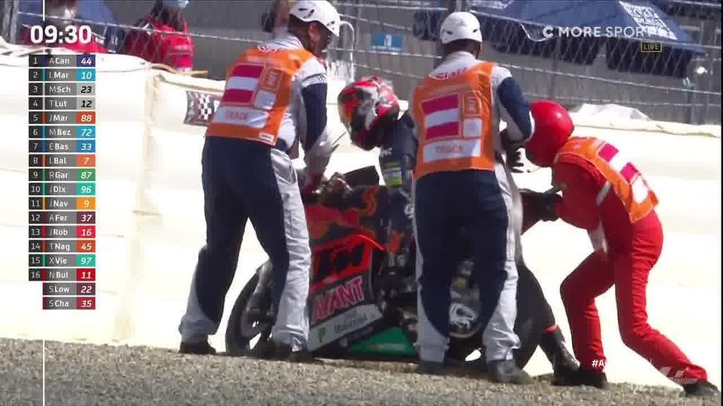 Ajon tallin onnistuja oli sen sijaan espanjalaiskuski Jorge Martin, joka taisteli toisen lähtöruudun. Hänen edeltään lähtee Australian Remy Gardner. Saksan Marcel Schrotter nappasi kolmospaikan. Kaksi edellistä kisaa voittanut MM-pistekärki Italian Enea Bastianini päätyi neljänteen ruutuun.