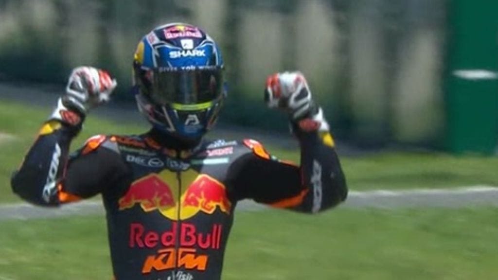 Aki Ajon Red Bull KTM Ajo -tallin Miguel Oliveira otti Italian Moto2-osakilpailussa kauden avausvoittonsa.