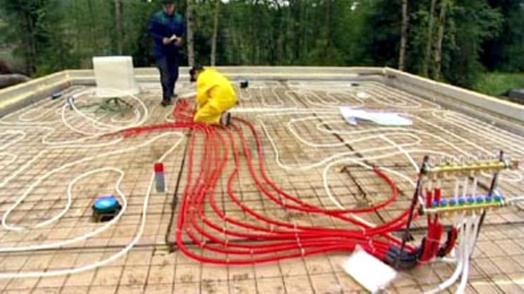 – Normitaloon verrattuna myös putkea laitetaan lattiaan enemmän ja se lenkitetään tiuhempaan. Sekin auttaa osaltaan menoveden lämpötilan alentamista. Kun meno- ja paluuputki ovat lisäksi vierekkäin, myös lattian pinnan lämpötila pysyy tasaisena.