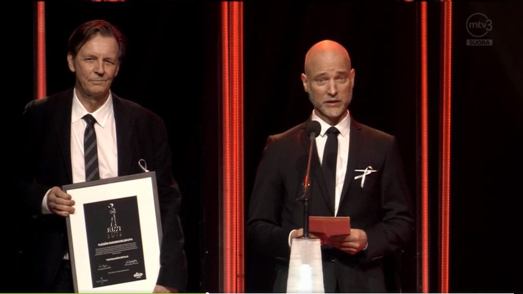 – Kiitoksia, että sain tulla tänne. Oli pakko kirjoittaa puhe paperille, yleensä en tee niin, mutta nyt on vähän toisenlainen tilanne. Kiitos jokaiselle Tuntemattoman sotilaan katsojalle. Tämä palkinto on teidän. Kiitos teille, korvaamaton joukko tekijöitä, tukijoita, mahdollistajia, tämä palkinto on myös teidän. Toivon, että annatte tänä iltana mahdollisuuden juhlia tätä elokuvaa, iloita työstänne ja saavutuksestanne.