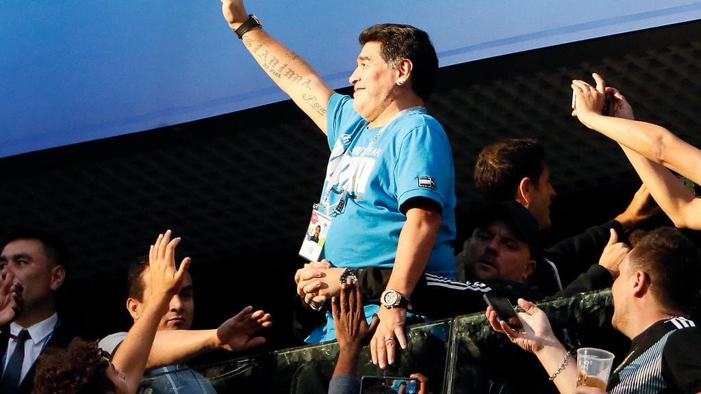 Argentiinan yksi kaikkien aikojen jalkapalloilijoista Diego Maradona säväytti jälleen kerran MM-kisakatsomoissa Venäjällä.