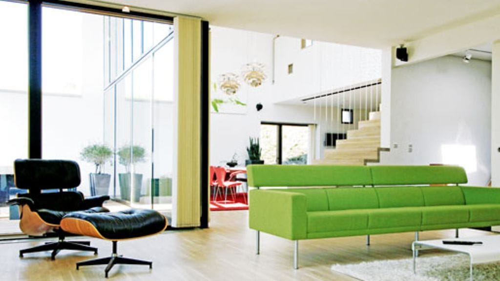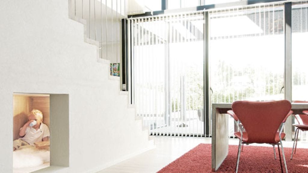 Viisihenkisen tanskalaisperheen koti koostuu kahdesta erillisestä rakennuksesta. Sivutalossa on työhuone. Suunnittelussa on panostettu erilaisiin älyratkaisuihin: muun muassa hälytys-, musiikki- ja valaistusjärjestelmiin.