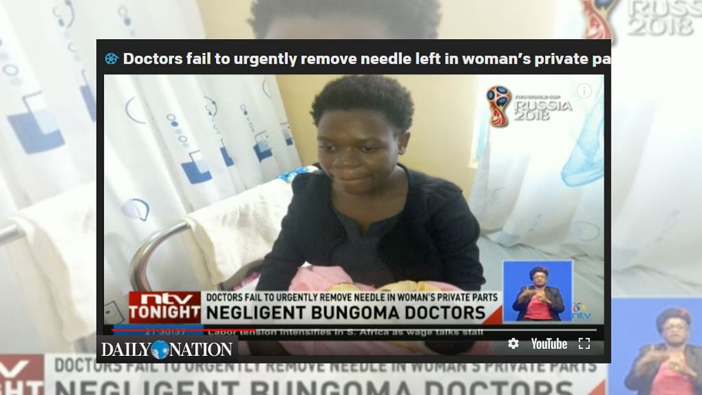 Afrikkalaisnainen toipuu koettelemuksestaan, jonka intiimialueelle unohtunut neula aiheutti, kertoo Daily Nation -sivusto. Nainen joutui odottamaan kipeästi kaipaamaansa leikkausta päiviä.