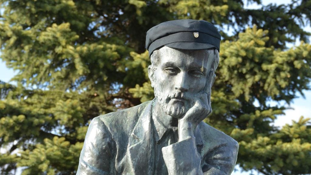 Aleksis Kiven patsas sai mustan ylioppilaslakin 1800-luvun perinteen mukaan.