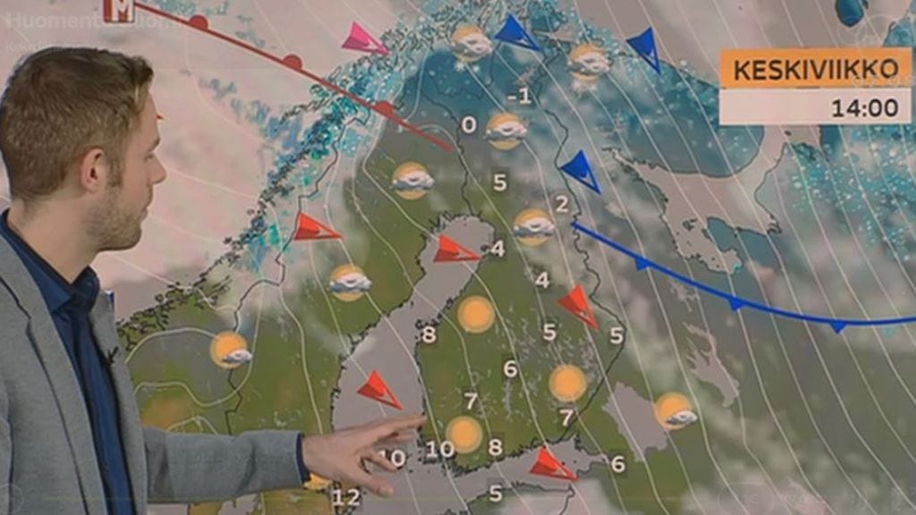 – Etelässä on lämpimintä, noin viisi astetta. Lännessä ja pohjoisessa on aurinkoista, idässä hieman pilvisempää ja lämmintäkin vain asteen, pari, MTV Uutisten meteorologi Aleksi Jokela kertoo.