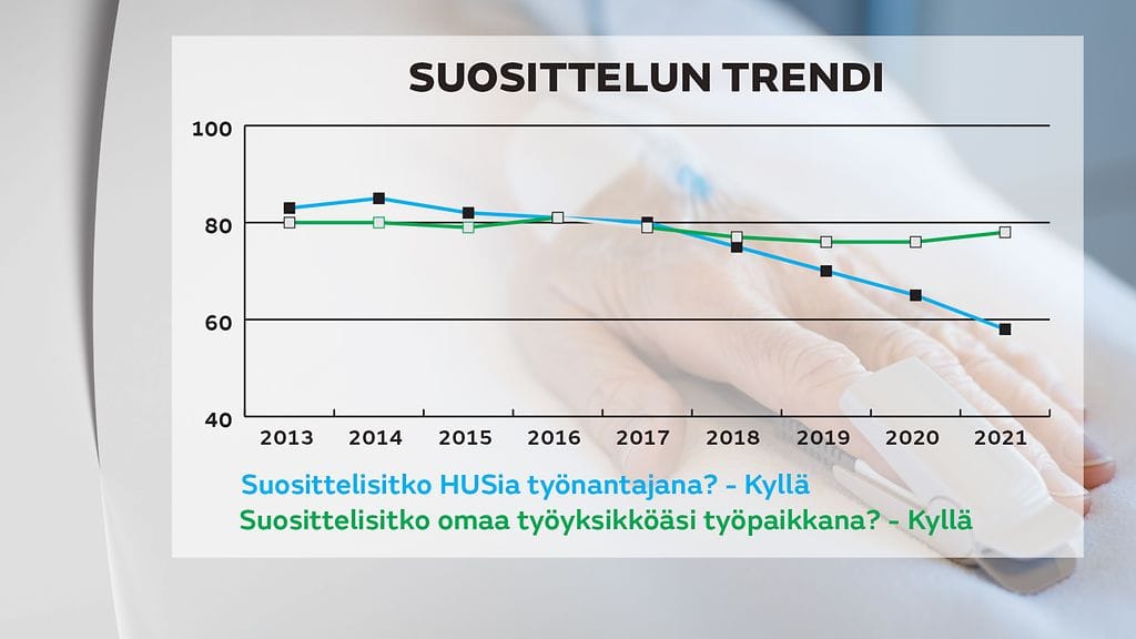 MTV Uutiset sai käsiinsä vielä julkaisemattoman HUS:n työolobarometrin tulokset, joista selviää työntekijöiden halu, tai haluttomuus, suositella työnantajaansa muille. Vastausten perusteella enää alle puolet lääkäreistä suosittelee HUSia työnantajana ja hoitajista joka toinen suosittelee HUSia työnantajana.