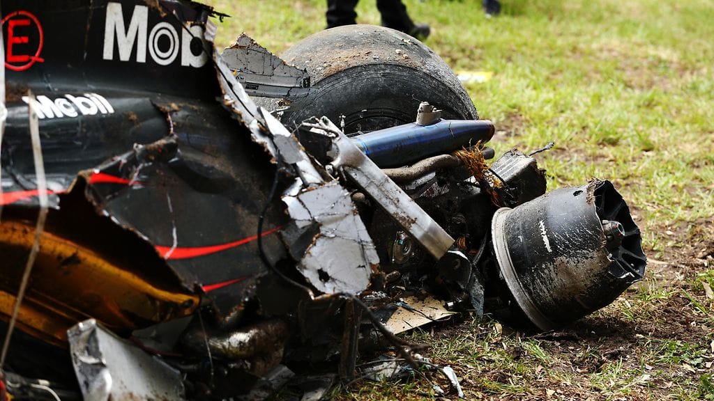 Alonso lähti Australian F1-kisan alkupuolella yrittämään ohitusta Melbournen katuradan kolmosmutkassa 310 kilometrin tuntivauhdissa. Hän kuitenkin osui Gutierrezin auton perään ja syöksyi seinän kautta turva-alueen yli pyörähtäen kaksi kertaa ympäri.