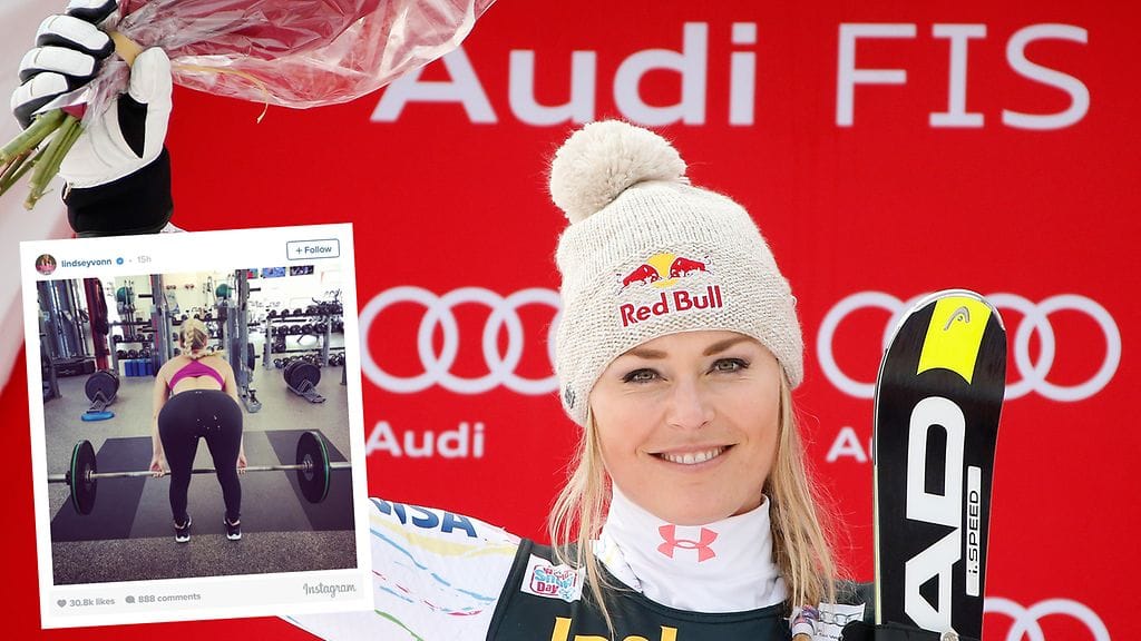 Alppihiihtäjä Lindsay Vonn julkaisi Instagramissa kuvan, jossa hän tekee maastavetoa. Kuva on otettu takaapäin ja pääosaa esittää Vonnin takapuoli.