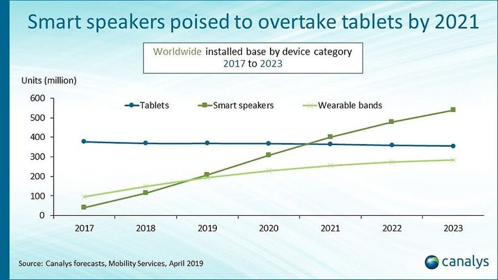 Vuodenvaihteessa maailmassa oli aktiivisessa käytössä noin 114 miljoonaa älykaiutinta, mutta vuoden 2019 loppuun mennessä määrän odotetaan kohoavan noin 208 miljoonaan, mikä tarkoittaisi reilun 82 prosentin kasvua. Yhdusvalloissa kaiuttimista olisi arvioiden mukaan 87,8 miljoonaa, eli 46 prosenttia enemmän kuin vuonna 2018. Kiinassa vastaava lukema olisi 59,9 miljoonaa, mikä tarkoittaisi valtavaa 166 prosentin kasvua.