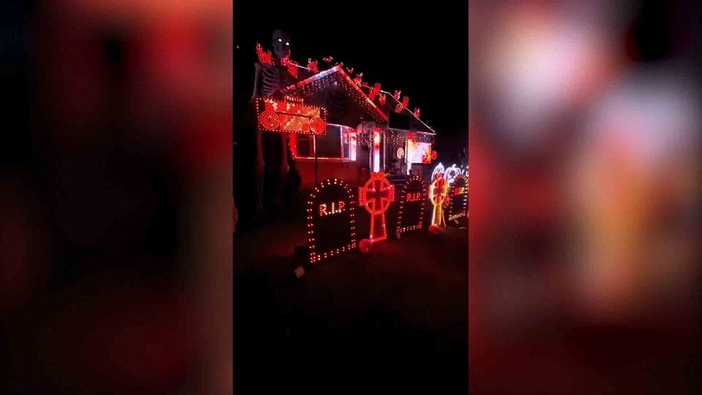 Perheen halloween-valoista ja -musiikeista on tullut paikallinen nähtävyys!