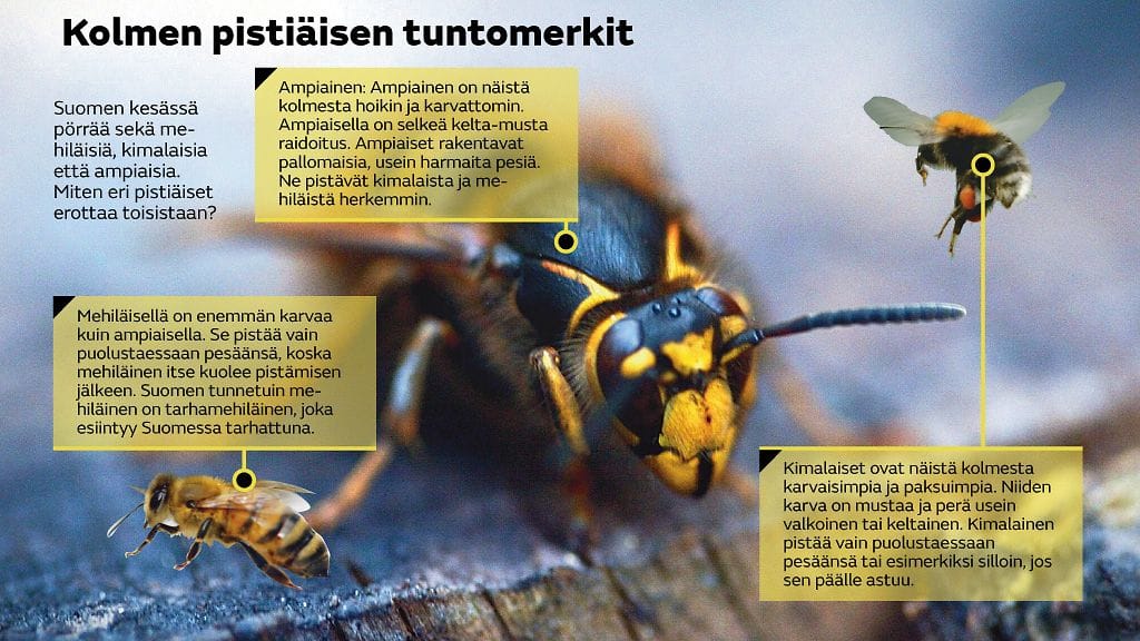 Suomen kesässä pörrää ampiaisia, mehiläisiä ja kimalaisia. Tiedätkö pörriäisten erot?