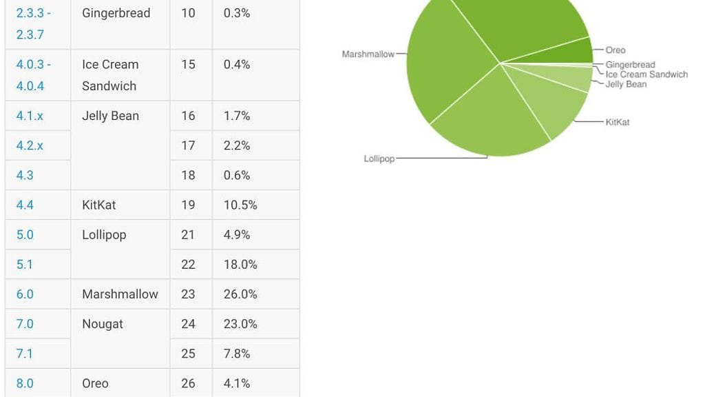 Android Oreon versio 8.0 keräsi eniten uusia käyttäjiä helmikuun tilastoihin verrattuna nousten 3,3 prosenttia 4,1 prosenttiin. Tuoreempi Android Oreo 8.1 puolestaan on asennettuna vasta 0,5 prosentissa kaikista Android-puhelimista, mikä vastaa jotakuinkin esimerkiksi jo vanhaksi käyneen 4.0 Ice Cream Sandwichin lukemia.