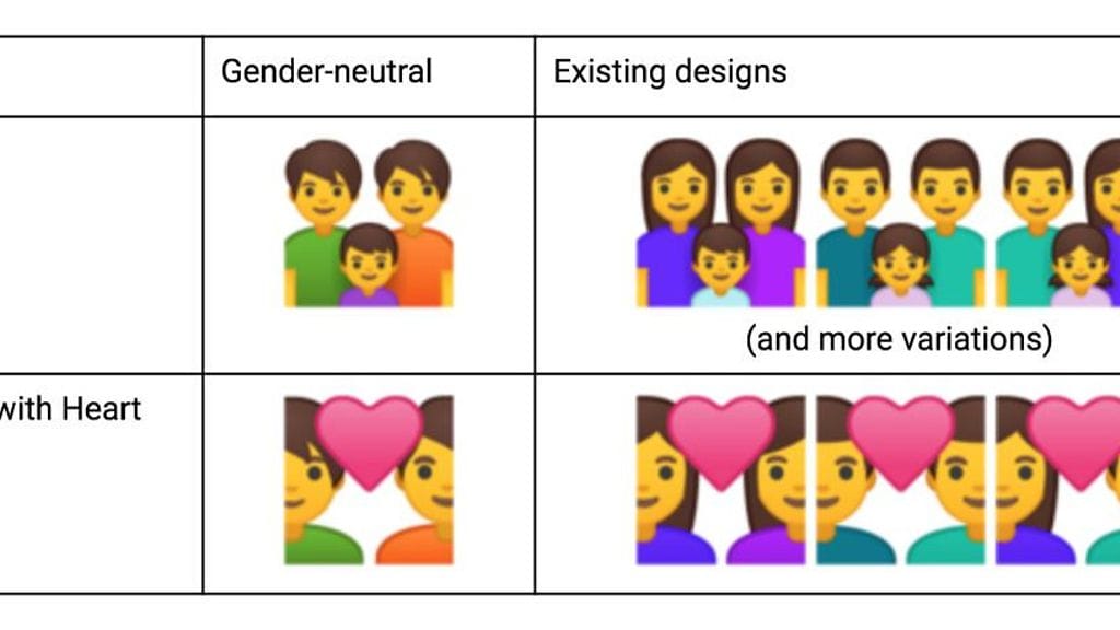 Uudet emojit sisältävät monia pieniä viilauksia, mutta myös merkittävämpiä muutoksia. Google on esimerkiksi nyt muuttanut tarjotut vakioversiot pariskunta- ja perhe-emojeista sukupuolineutraaleiksi.