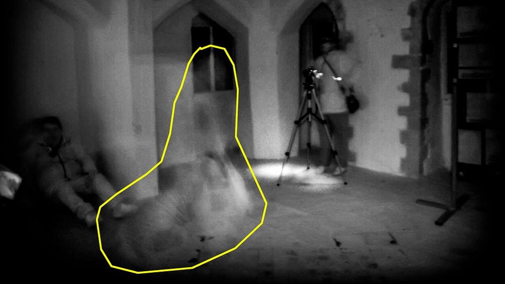 Kuvassa sanotaan näkyvän naisen utuinen hahmo ja koiran hänen jaloissaan. Kuva on otettu yöaikaan viime vuoden huhtikuussa raunion niin sanotussa Valkoisessa huoneessa, jossa kuningatar Isabellan haamun väitetään kummittelevan.