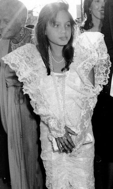 Jolie näyttäytyi elokuvamaailman arvostetuimman tapahtuman, Oscar-gaalan punaisella matolla ensimmäistä kertaa vasta kymmenvuotiaana, vuonna 1986. Isänsä Jon Voightin käsipuolessa gaalassa vieraillut nuori Jolie oli pukeutunut valkoiseen pitsiunelmaan, jossa nuori tähti näytti aivan prinsessalta – aivan kuten useat kymmenvuotiaat haaveilevat.