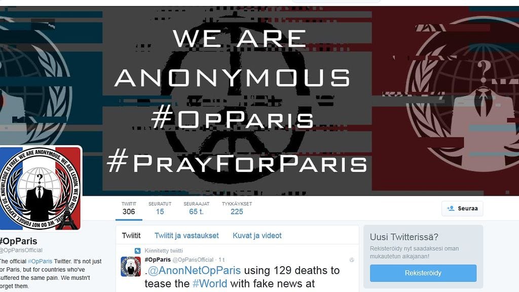 Anonymous-nimellä kulkeva hakkeriliike ilmoitti Pariisin iskujen jälkeen ryhtyvänsä sotimaan Isisiä vastaan. Käytännössä Anonymous on pyrkinyt ainakin sulkemaan Isisin käyttämiä Twitter-tilejä. Ryhmittymä on myös kehottanut ketä tahansa ilmiantamaan tuntemiaan Isisin tilejä.