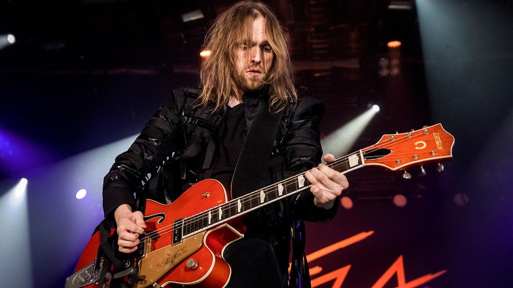 – Note to self: kun tarvitset keikoilla kädet vapaiksi, niin musta plektra kannattaa sujauttaa vaikkapa taskuun, ei hampaiden väliin, hän kirjoittaa kuvan yhteydessä.