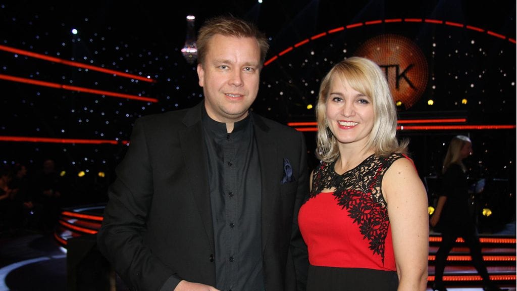 Kansanedustaja Antti Kaikkonen ja hänen vaimonsa Satu Taiveaho saapuivat seuraaman suoraa Tanssii Tähtien Kanssa -lähetystä.