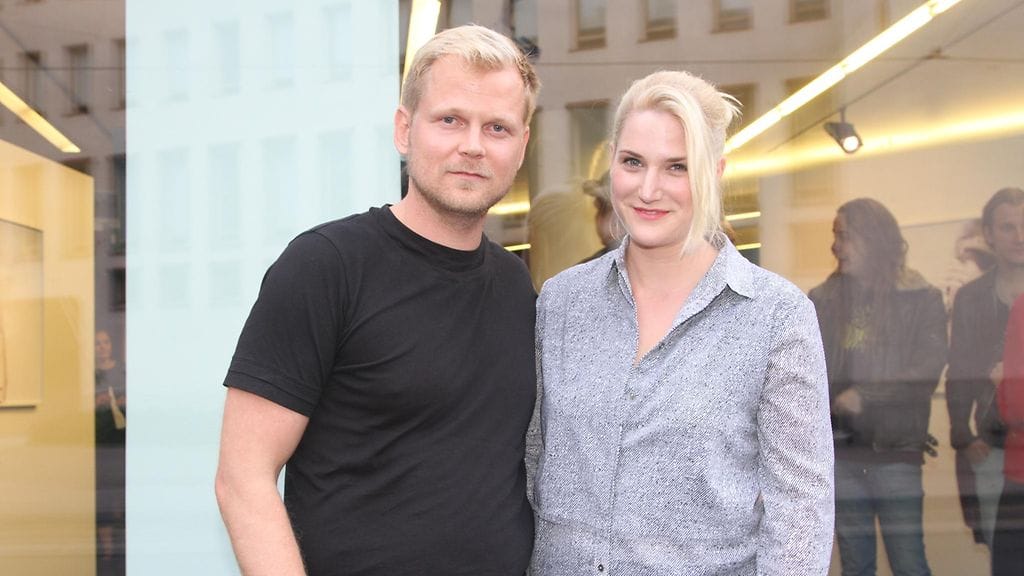 Näyttelijä Antti Luusuaniemi edusti vaimonsa Lili Zoe Ermezein kanssa tämän taidenäyttelyssä perjantaina Helsingissä.