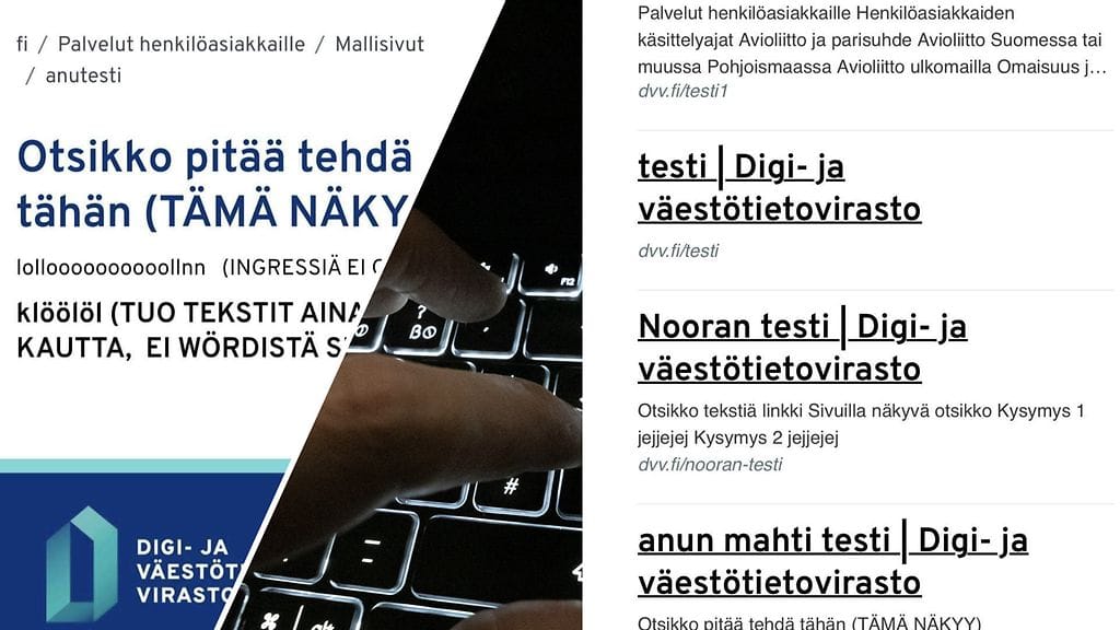 Jokaisen nettisivuja julkaisevan painajainen osui Digi- ja väestötietoviraston kohdalle eilisiltana, kun sivuston testaamista varten tehdyt tekstit menivät vahingossa julki ja kaikkien sivustolle osuneiden nähtäviksi.