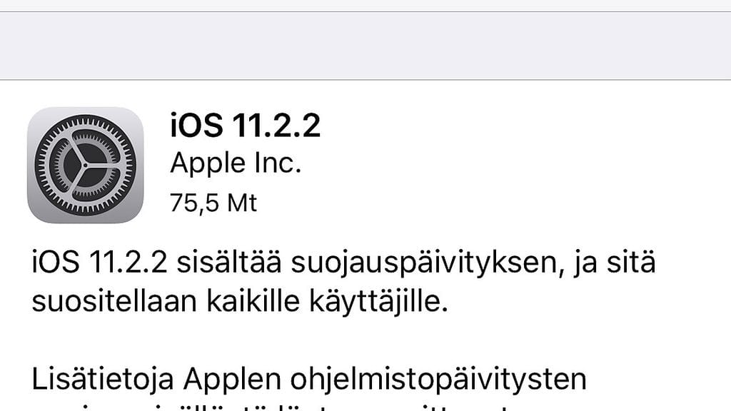 Applen mukaan iOS 11.2.2 sisältää suojauspäivityksen, ja sitä suositellaan kaikille käyttäjille.