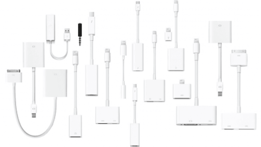 Apple myy erilaisia eri liitäntöjen välisiä adaptereita eli sovittimia jo ainakin 17 eri tyypissä omalla brändillään. Lisäksi myynnissä on myös muiden laitevalmistajien sovittimia. Twitterissä Drew Breunig on twiitannut kuvan Applen sovitinvalikoimasta.