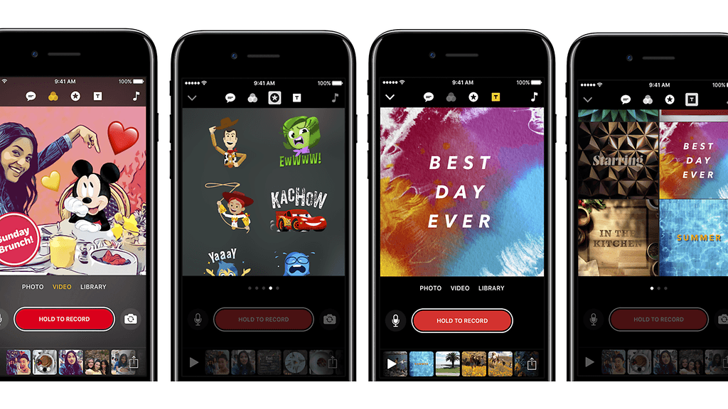 - Muokkaa videoitasi animoiduilla Disney-grafiikoilla, joissa esiintyvät mm. Mikki ja Minni.