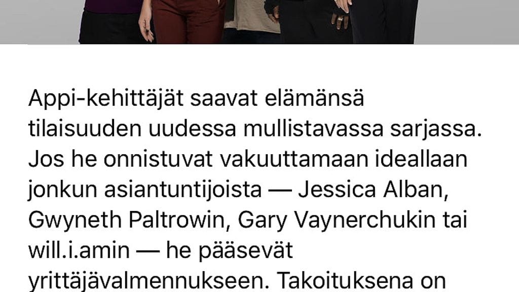 Apple on tuonut katsottavaksi avausjakson sen historian ensimmäisestä omasta TV-sarjasta Planet of the Apps. Sarja on katsottavissa Apple Musiikki -sovelluksen Selaa-näkymän ja iTunesin kautta. Ensimmäisen jakson pääsee katsomaan ilmaiseksi, sen jälkeen vaaditaan Apple Musiikki -tilaus.