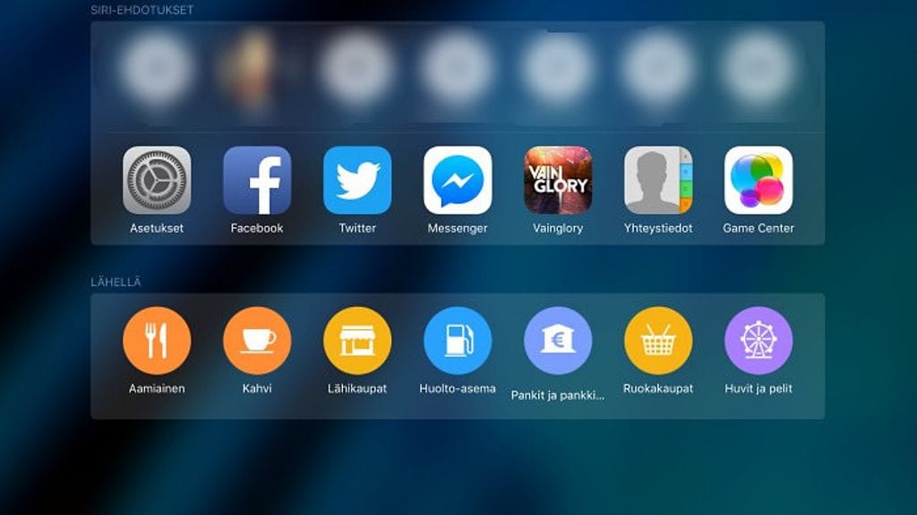 Nearby- eli Lähellä-toiminnon avulla voi helposti löytää esimerkiksi lähistöllä sijaitsevia kahviloita tai huoltoasemia. Lähellä-toiminto löytyy iOS 9:ssä kotivalikon vasemmalta puolelta. Pyyhkäisy kotivalikosta oikealle tuo esiin hakutoiminnon, Siri-ehdotukset viimeksi käytetyistä yhteystiedoista ja sovelluksista, sekä nyt myös uuden Lähellä-toiminnon. Esimerkiksi huoltoasemakuvakkeen valitseminen avaa kartan ja näyttää kaikki lähiseuduilla sijaitsevat huoltoasemat, joiden tiedot löytyvät Applen kartoista. Lähellä-ehdotukset löytyvät myös Kartat-sovelluksen hausta.