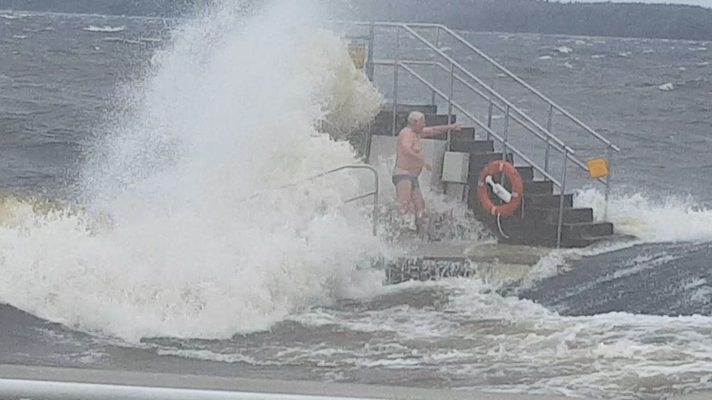 Tampereen Näsijärvellä raivosi eilen Aila-myrskyn voima. Eräs uimari ei myrskystä hätkähtänyt, vaan uhmasi luonnon voimaa. Kovat aallot ja pärskeet saivat hänen mielensä kuitenkin muuttumaan.