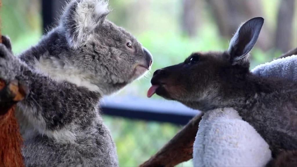 Koalan ja kengurun välinen ystävyys on melko harvinaista. Australialaisessa eläintarhassa Frankie-kengurusta ja Ash-koalasta on kuitenkin tullut parhaat ystävät.