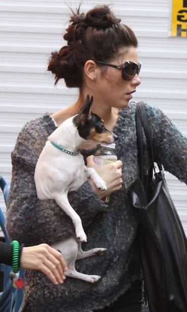 Twilight-elokuvissakin näytellyt Ashley Greene rakastaa terhakkaa amerikankääpiökettuterrieriään niin paljon, että koira kulkee mukana kuvauksissakin.