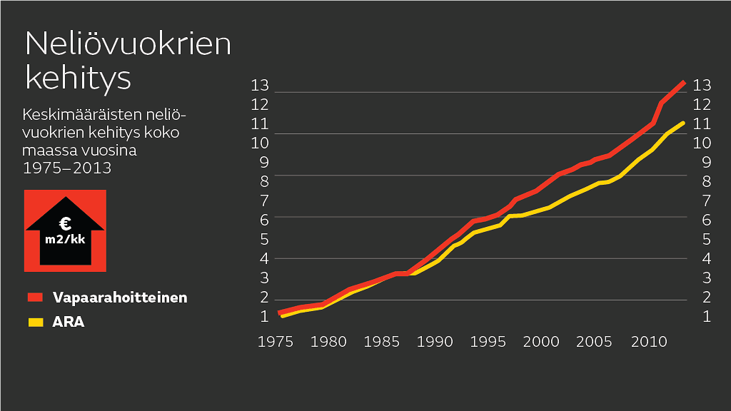 Vuokrat nousivat samaa tahtia sekä vapaarahoitteisissa että Ara-asunnoissa.