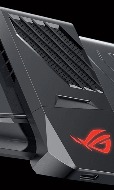 Myös ROG Phonen design on erottuu joukosta. Takapinta on lasia, mutta mukana on jäähdytystä tehostamassa myös metalliosa aukkoineen. Erityinen yksityiskohta on myös ROG-logo erilaisilla efekteillä ja valitulla värillä ohjelmoitavalla valolla. Se syttyy pelatessa, minkä lisäksi aktivointi onnistuu puhelinta puristamalla. Ultraääniantureihin HTC-puhelinten tavoin perustuva puristustunnistus on otettu käyttöön myös peleissä, joissa AirTriggers-niminen toiminto mahdollistaa valitut peliin liittyvät toiminnot puhelinta puristamalla. AirTriggers-painalluskohtia on yhteensä kolme – kaksi vasemmalla kyljellä ja yksi oikean kyljen alakulmassa. Niitä voidaan hyödyntää myös pelien ulkopuolelle oikoteinä eri toimintoihin.